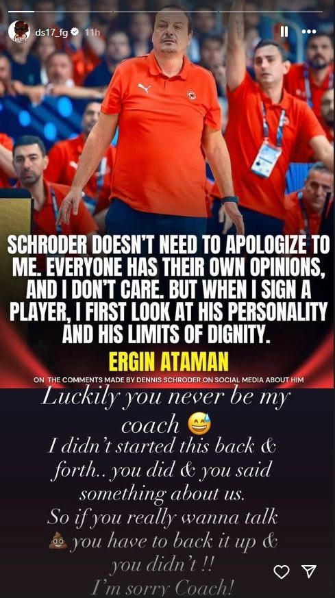 Η κόντρα που έχει ανοίξει ανάμεσα στον Εργκίν Αταμάν και τον Ντένις Σρούντερ από το φινάλε του EuroBasket 2025, καλά κρατεί.