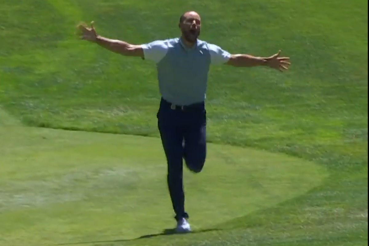 Απίστευτη βολή 139 μέτρων πέτυχε ο Στεφ Κάρι, παίζοντας γκολφ και άρχισε να πανηγυρίζει έξαλλα, μην μπορώντας να πιστέψει ούτε ο ίδιος το κατόρθωμά του.