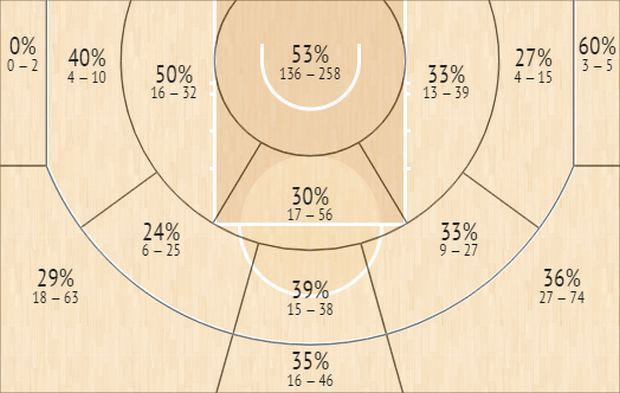 Ιδού το Shot Chart του Μπρουκ Λόπεζ (Πηγή InStat Scout)