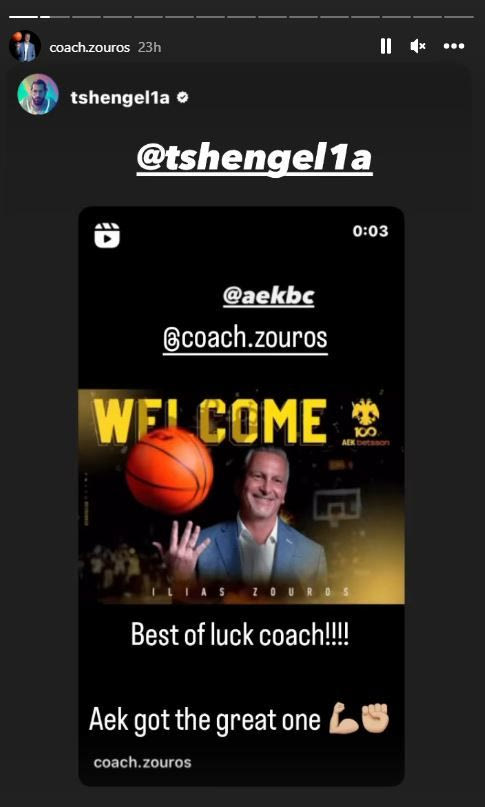 Ο Γεωργιανός ψηλός της Βίρτους Μπολόνια έγραψε ενδεικτικά στο Instagram: “Καλή επιτυχία κόουτς. Η ΑΕΚ πήρε τον σπουδαίο”, κάνοντας tag τόσο τον ίδιο τον Ηλία Ζούρο, όσο και την Ένωση.