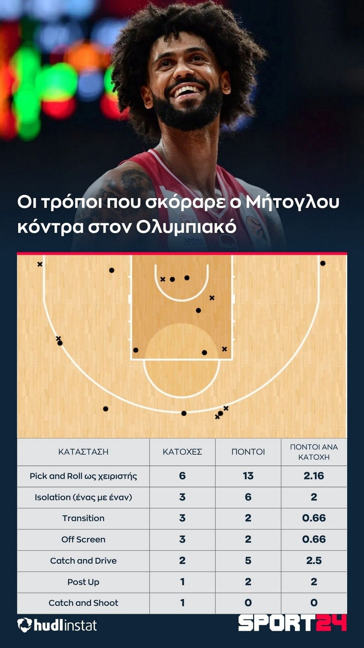 Σύμφωνα με το Hudl Instat, οι “ερυθρόλευκοι” πήραν άλλους 7 πόντους από τις ασίστ του Σέρβου, αλλά και άλλους 15 από τα σκριν που έκανε στους συμπαίκτες του! Κοινώς, ήταν υπεύθυνος (άμεσα ή έμμεσα) για 38 πόντους του Ολυμπιακού.
