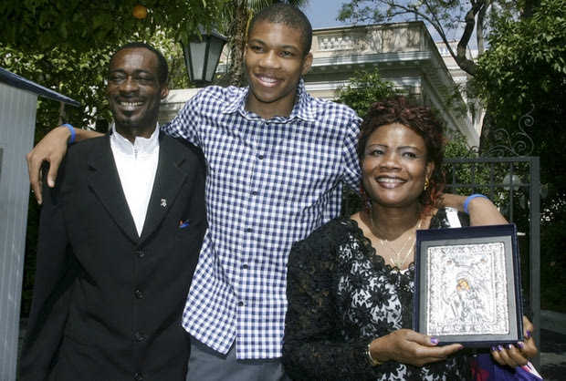 Στις αρχές της δεκαετίας του ’90 (το 1991), ο Τσάρλς Αντετοκούνμπο (ο οποίος στα νιάτα του ήταν ποδοσφαιριστής στην Νιγηρία) μαζί με την σύζυγο του Βέρα, ήρθαν για πρώτη φορά στην Ελλάδα, η οποία και έγινε η δεύτερη πατρίδα τους. Διέμειναν στα Σεπόλια και ακολούθως έφεραν στον κόσμο τον Θανάση (1992), τον Γιάννη (1994) τον Κώστα (1998) και τον Αλέξη. Και τα τέσσερα παιδιά γεννήθηκαν και μεγάλωσαν στην Αθήνα, με εξαίρεση τον πρωτότοκο Φράνσις, ο οποίος παρέμεινε με τον παππού και την γιαγιά στο Λάγος της Νιγηρίας.