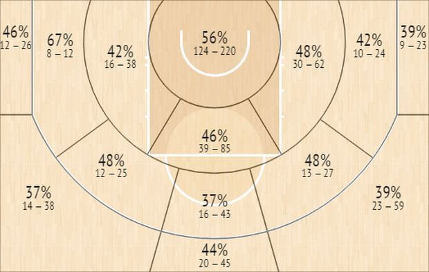 Σύμφωνα με το InStat Scout, ο περσινός Τζούλιους Ραντλ ήταν ένας παίκτης που ξεκινούσε τις επιθέσεις του από έξω προς τα μέσα σε καταστάσεις ένας εναντιον ενός, παίρνοντας το 20.8% των σουτ του σε τέτοια κατάσταση ( 3.7 κατοχές), έναντι 15.5% (2.7 κατοχές) των επιθέσεων που έπαιρνε ποστάροντας, ενώ έπαιρνε το 15.7% των επιθέσεών του σε καταστάσεις Catch and Shoot (2.7 κατοχές).