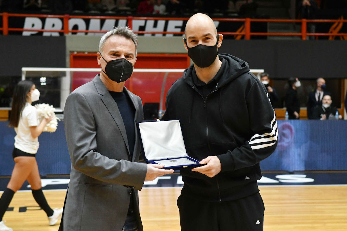 Ο Βασίλης Σπανούλης βραβεύτηκε στο ημίχρονο του αγώνα Προμηθέας – Βίρτους Μπολόνια