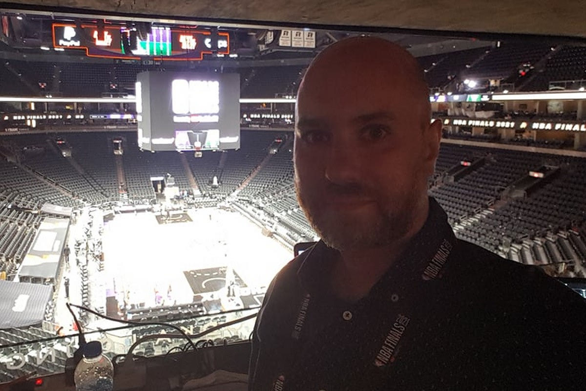 Ο Χάρης Σταύρου μέσα από το γήπεδο των Σανς αμέσως μετά το ματς και τον θρίαμβο των Μπακς του Αντετοκούνμπο