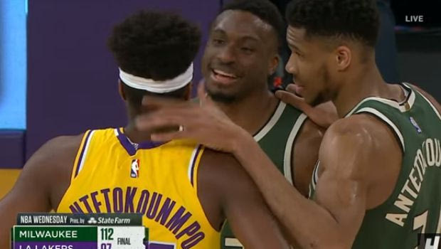 Οι αγκαλιές των Γιάννη, Θανάση και Κώστα Αντετοκούνμπο μετά το τέλος του Λέικερς – Μπακς