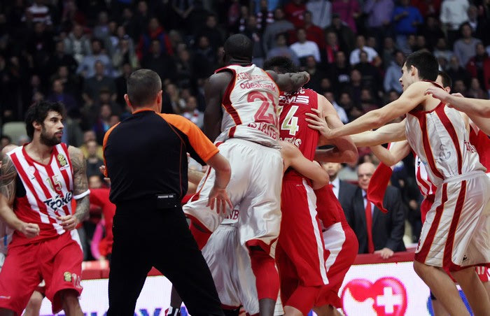 Οι δύο παίκτες έδωσαν τη μάχη για ένα ριμπάουντ έπειτα από βολές του Αρόγιο και τα σπρωξίματα, έφεραν τις μπουνιές, τις κλωτσιές και την σύρραξη.