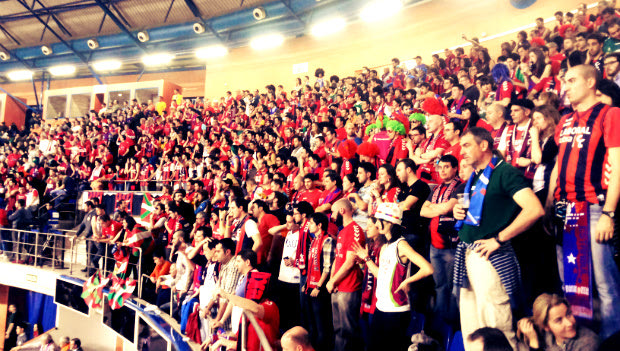 Την Πέμπτη (6/2) ήταν οι οπαδοί της Ρεάλ που κέρδισαν κατά κράτος τη μάχη της εξέδρας στο Palacio de Deportes. Σήμερα ήταν η σειρά των baskonistas να δείξουν τι εστί Χώρα των Βάσκων! Το ένα πέταλο ”κοκκίνισε” από τους περίπου 300 οπαδούς της Λαμποράλ Κούτσα ενώ το ”Ba-sko-ni-a” ακουγόταν συνεχώς κατά τη διάρκεια του αγώνα. Η μπάντα των Βάσκων δεν σταμάτησε λεπτό όπως και τα συνθήματα στα βάσκικα, (σ.σ. ρωτήσαμε τους Ισπανούς συναδέλφους τι σημαίνουν αυτά που ακούγαμε και δήλωσαν άγνοια!!!). Οι οπαδοί της Λαμποράλ Κούτσα ήλθαν στο γήπεδο με τον… σωστό ενδυματολογικό κώδικα, φορώντας παραδοσιακές τραγιάσκες και κόκκινα μπλουζάκια με έμβλημα τον ταύρο.