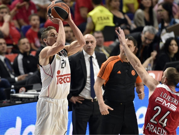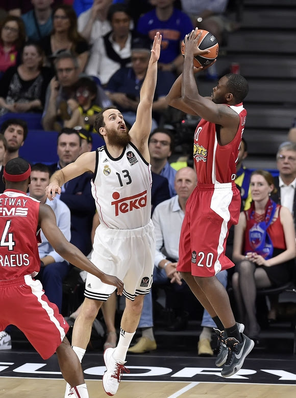 Πολύ καλά προσαρμοσμένη η άμυνα της Ρεάλ Μαδρίτης στον Βασίλη Σπανούλη, έχει περιορίσει σημαντικά τον αρχηγό του Ολυμπιακού.