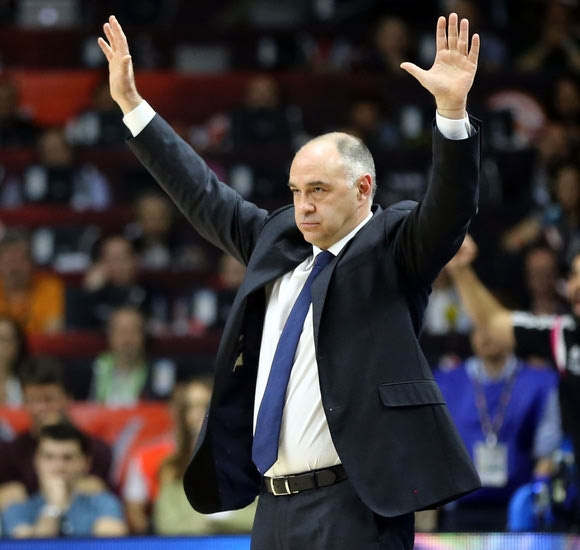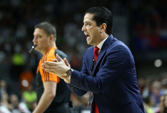 Ο Σφαιρόπουλος χειροκροτεί τους παίκτες του που κοντράρουν στα ίσα την Ρεάλ μέσα στο Barclaycard Center.