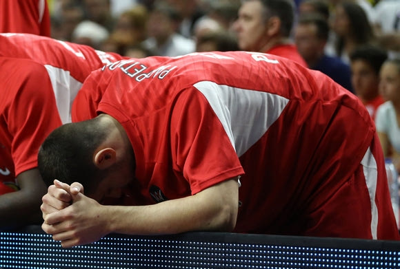 Χαρακτηριστική η εικόνα προς το τέλος του αγώνα, με τον ρούκι σε Final-4, Ιωάννη Παπαπέτρου, απογοητευμένο στον πάγκο με την εξέλιξη του τελικού.