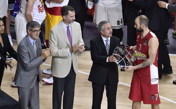 Ο Σπανούλης παραλαμβάνει το τρόπαιο του δευτεραθλητή Ευρώπης.