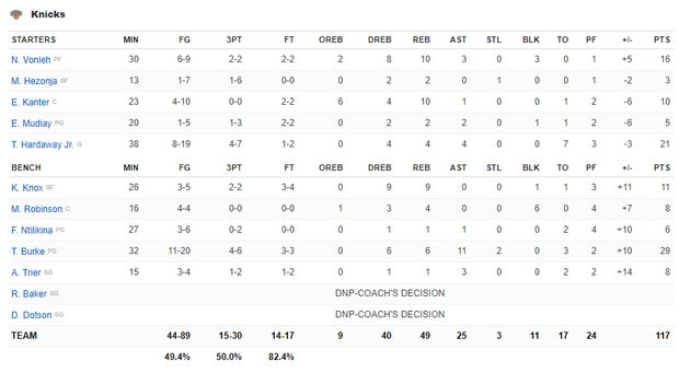 Με αυτή τη νίκη οι Νικς βελτίωσαν το ρεκόρ τους στο 5-14, την ίδια στιγμή που οι Σέλτικς έχουν πλέον ρεκόρ 9-9, δείχνοντας για πολλοστή φορά ότι ψάχνονται.