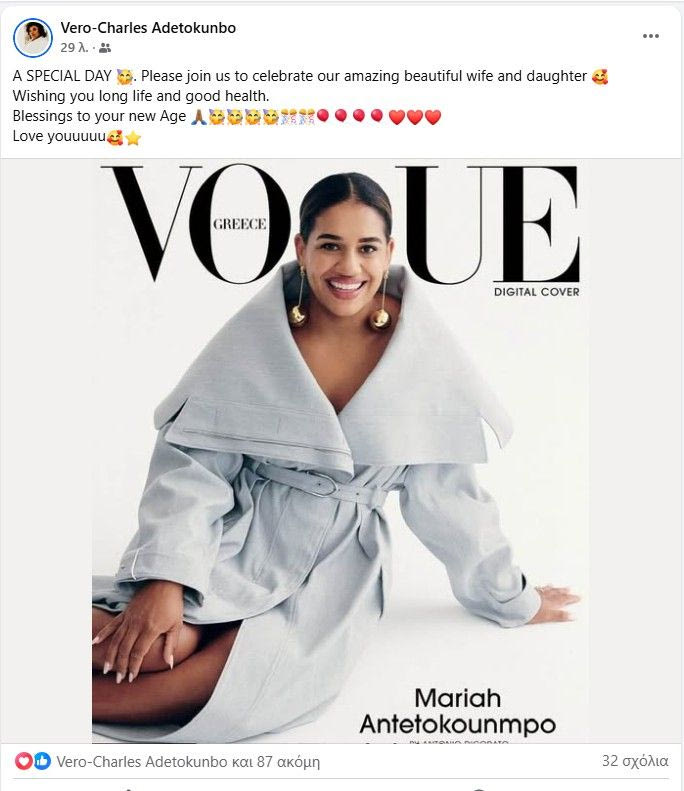 “Μία ξεχωριστή ημέρα. Παρακαλώ ελάτε κι εσείς να γιορτάσουμε μαζί την καταπληκτική σύζυγο και κόρη μας. Σου εύχομαι μακροζωία και καλή υγεία. Όλες τις ευλογίες. Σε αγαπώωω”, έγραψε η μητέρα του Γιάννη, δείχνοντας την αγάπη της για την Μαράια, που της έχει χαρίσει τέσσερα εγγόνια.