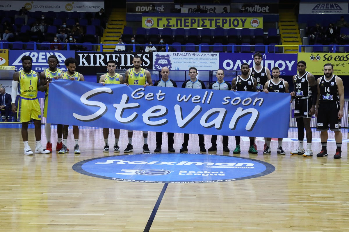 Σε μία όμορφη κίνηση προχώρησαν οι αθλητές της Stoiximan Basket League πριν από τις αναμετρήσεις Περιστέρι-Απόλλωνας Πάτρας και Προμηθέας-Κολοσσός καθώς κράτησαν πανό δείχνοντας την συμπαράστασή τους στον Σέρβο αθλητή της ΑΕΚ, Στέβαν Γέλοβατς που εξακολουθεί να βρίσκεται στο νοσοκομείο.