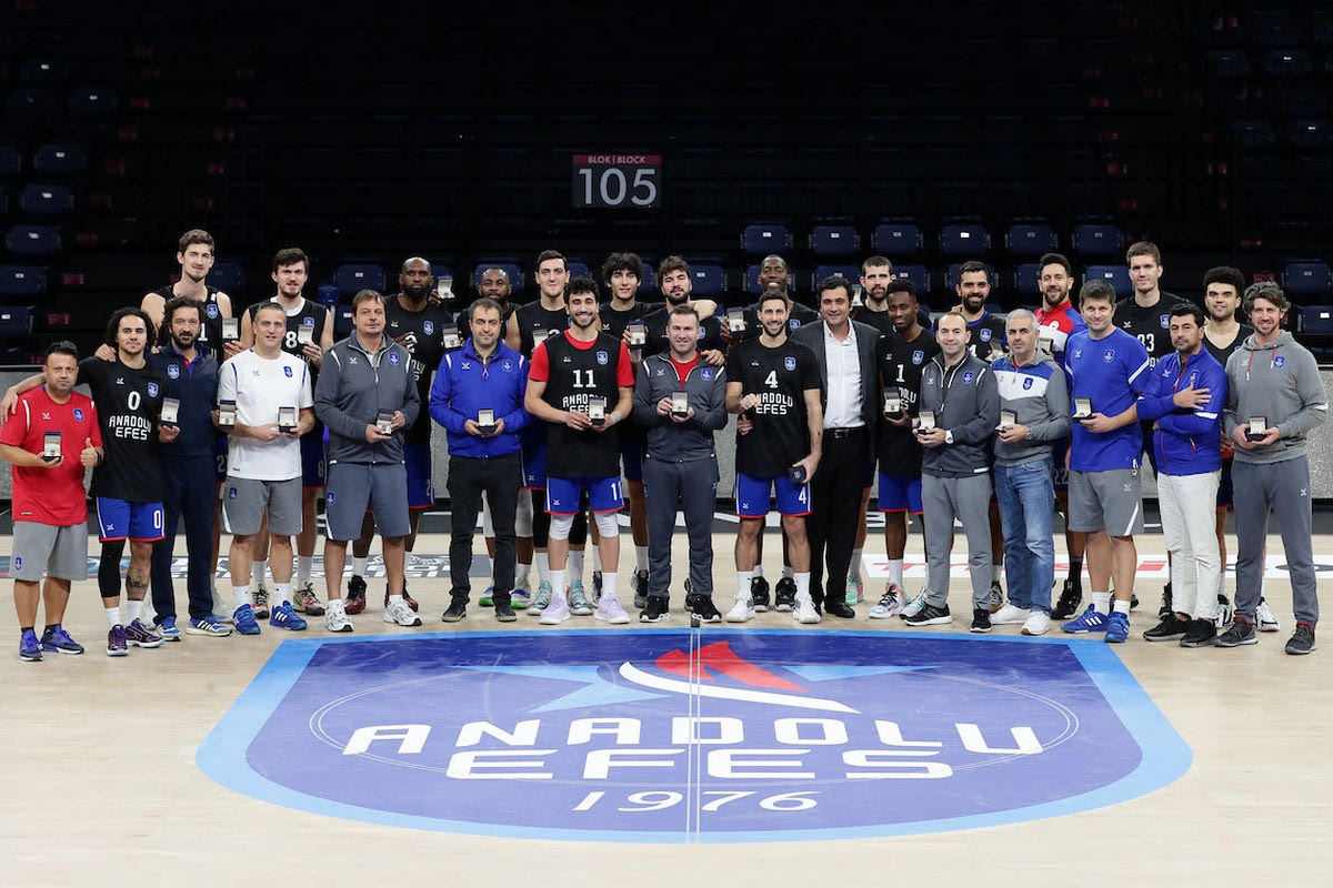 Λίγες ώρες πριν από το συναπάντημα με την Μπαρτσελόνα, οι παίκτες της Αναντολού Εφές παρέλαβαν τα δαχτυλίδια για την κατάκτηση της περσινής EuroLeague.