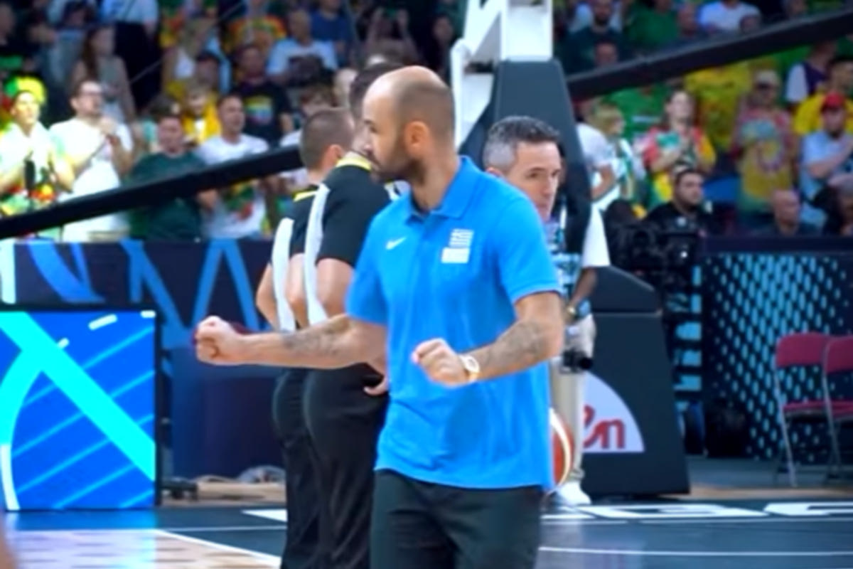 Όπως φάνηκε και στη συνέχεια του VIDEO, ο Θανάσης Αντετοκούνμπο κινήθηκε ύστερα προς το μέρος του προέδρου της ΕΟΚ, Βαγγέλη Λιόλιου και φώναξε “άλλο ένα”, δίνοντας από τώρα το σύνθημα για την πρόκριση στον τελικό.
