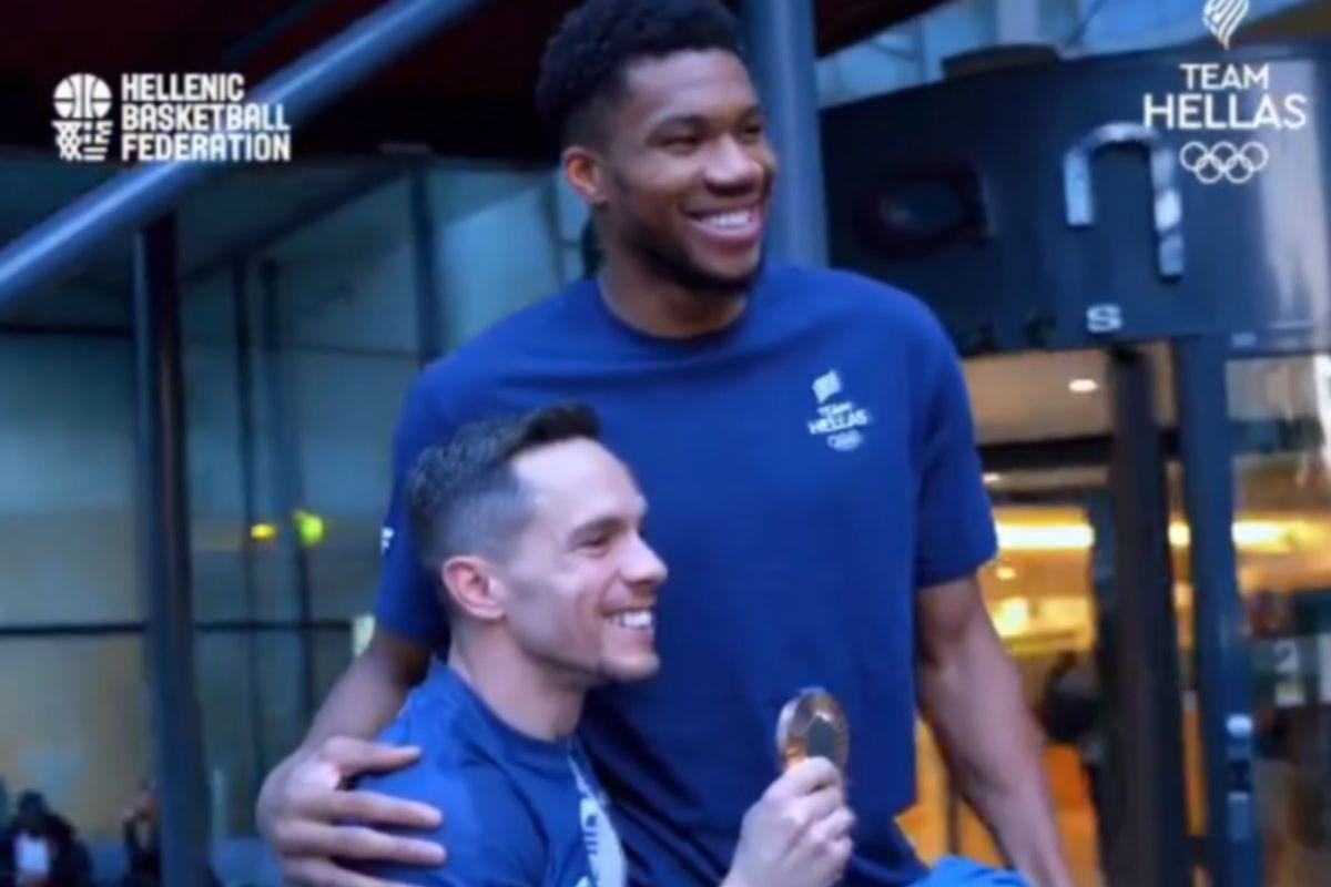 Οι τρομερές αγκαλιές του Πετρούνια με Σπανούλη και παίκτες της Εθνικής, έπαθαν πλάκα με το μετάλλιό του
