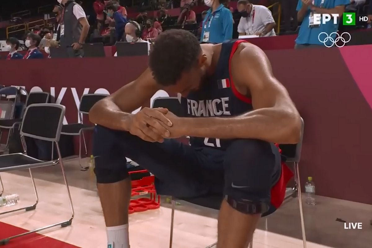 Με το παιχνίδι να έχει ολοκληρωθεί, η κάμερα έπιασε τον Ρούντι Γκομπέρ (κορυφαίος των Γάλλων στο ματς με 16 πόντους) να κάθεται απαρηγόρητος σε μία καρέκλα με τα δάκρυα να κυλούν στο πρόσωπό του. Λίγα μέτρα πιο μακριά, το άλλο άκρο: Οι παίκτες των ΗΠΑ να πανηγυρίζουν για την κατάκτηση του χρυσού μεταλλίου.