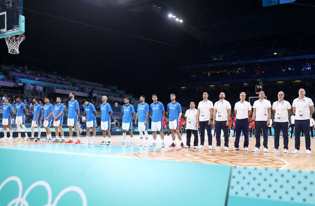 Πολύ όμορφες στιγμές πριν από το τζάμπολ του αγώνα της Ελλάδας με τον Καναδά για την 1η αγωνιστική του μπασκετικού τουρνουά των Ολυμπιακών Αγώνων 2024. Το Πιέρ-Μορουά ήταν γεμάτο με 27.000 θεατές, ενώ αρκετοί εξ’αυτών τραγούδησαν με περηφάνια τον Εθνικό Ύμνο της Ελλάδας, κάνοντας κάτι περισσότερο από αισθητή την παρουσία τους στις κερκίδες του γηπέδου της Λιλ.
