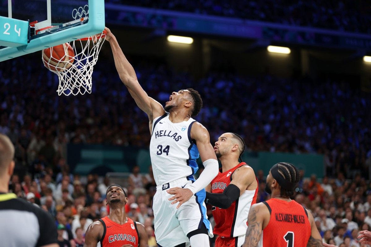 Ασταμάτητος Γιάννης Αντετοκούνμπο με ρεσιτάλ καρφωμάτων στην αναμέτρηση της Ελλάδας με τον Καναδά για το τουρνουά μπάσκετ των Ολυμπιακών Αγώνων.