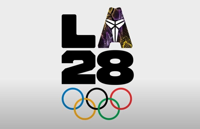 Το ειδικά προσαρμοσμένο λογότυπο των Ολυμπιακών Αγώνων 2028 του Λος Άντζελες, που σχεδίασε η Βανέσα Μπράιαντ προς τιμήν του Κόμπι και θα χρησιμοποιηθεί στη διοργάνωση, όπως σημείωσε η αρμόδια Οργανωτική Επιτροπή.