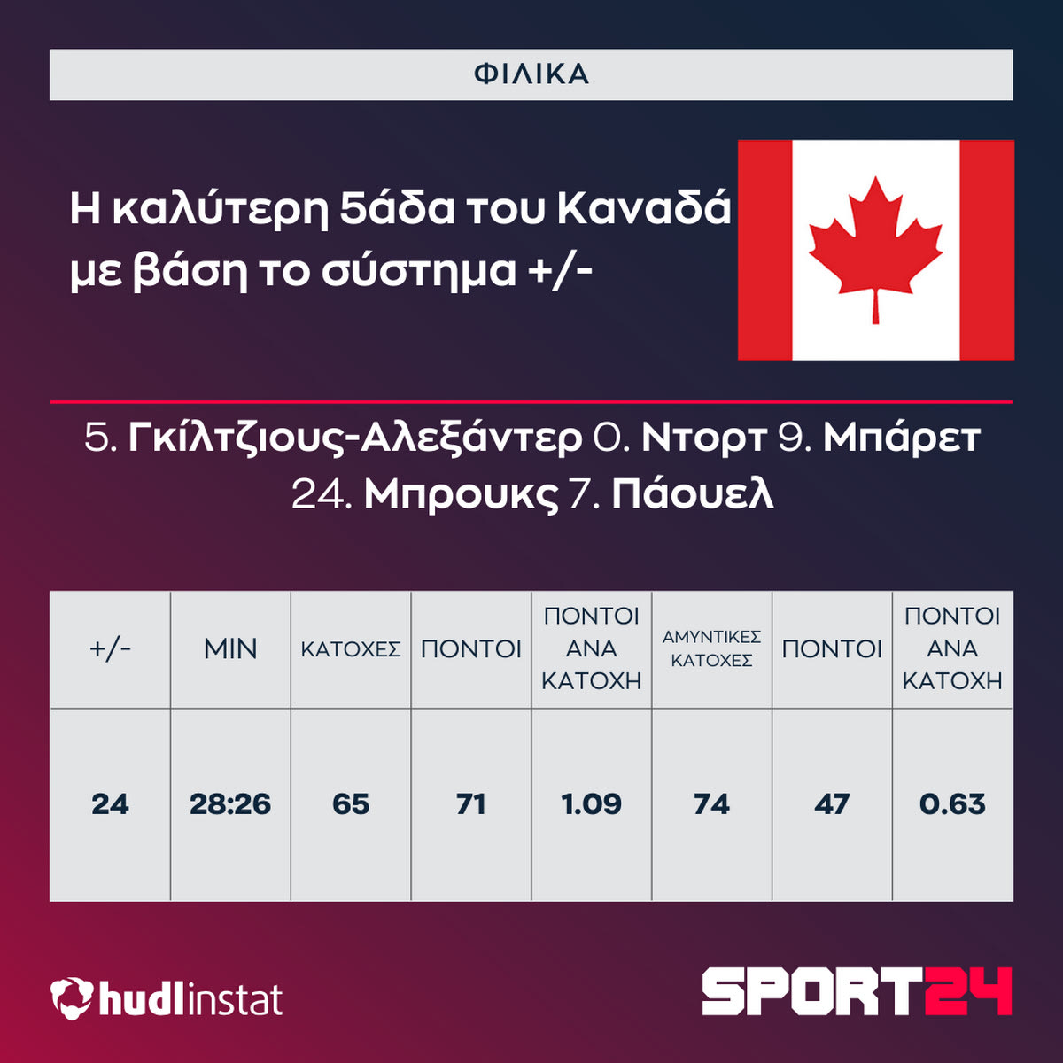 To SPORT24 παρουσιάζει με την βοήθεια του Hudl Instat το προφίλ των Καναδών.