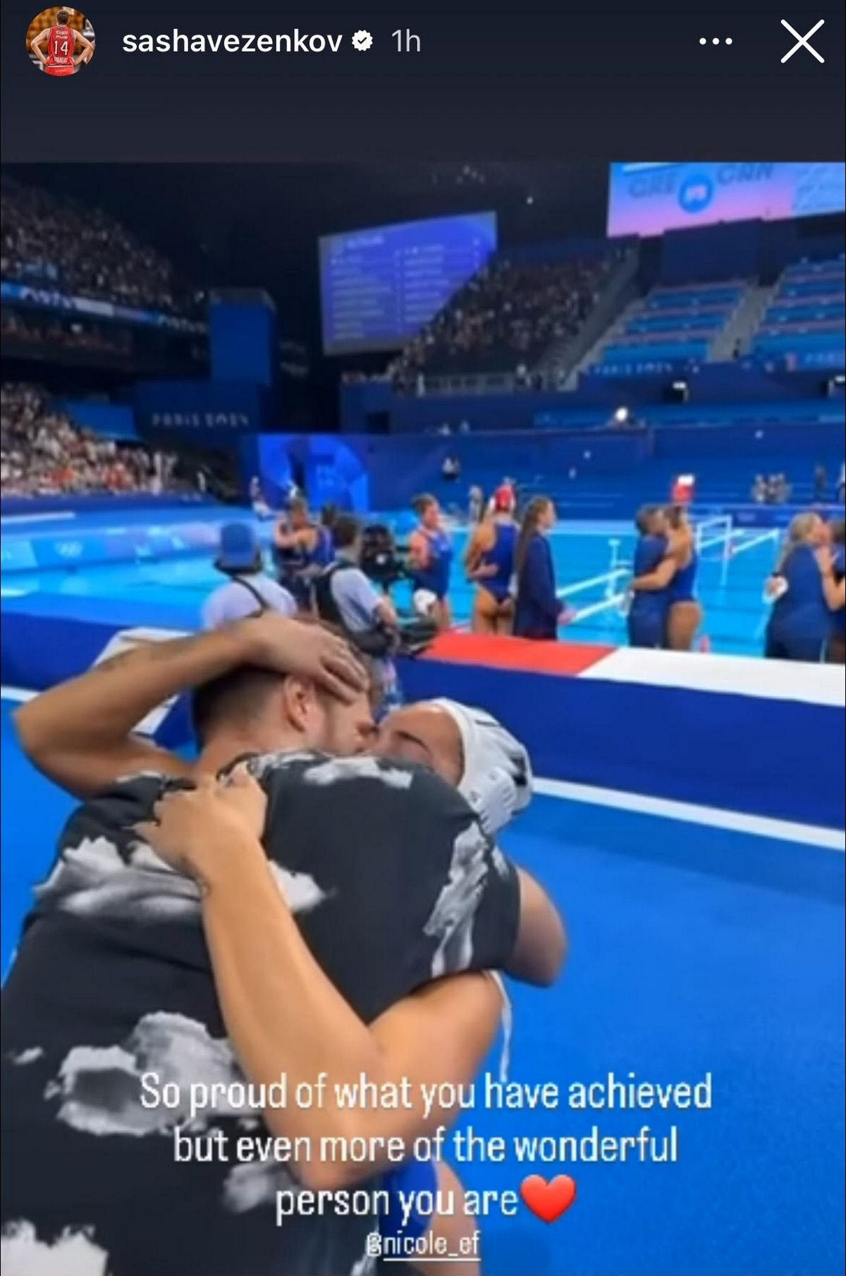 Το όμορφο μήνυμα του Σάσα Βεζένκοβ στην σύντροφό του, Νικόλ Ελευθεριάδου, για την έβδομη θέση της Εθνικής ομάδας πόλο γυναικών στους Ολυμπιακούς Αγώνες.