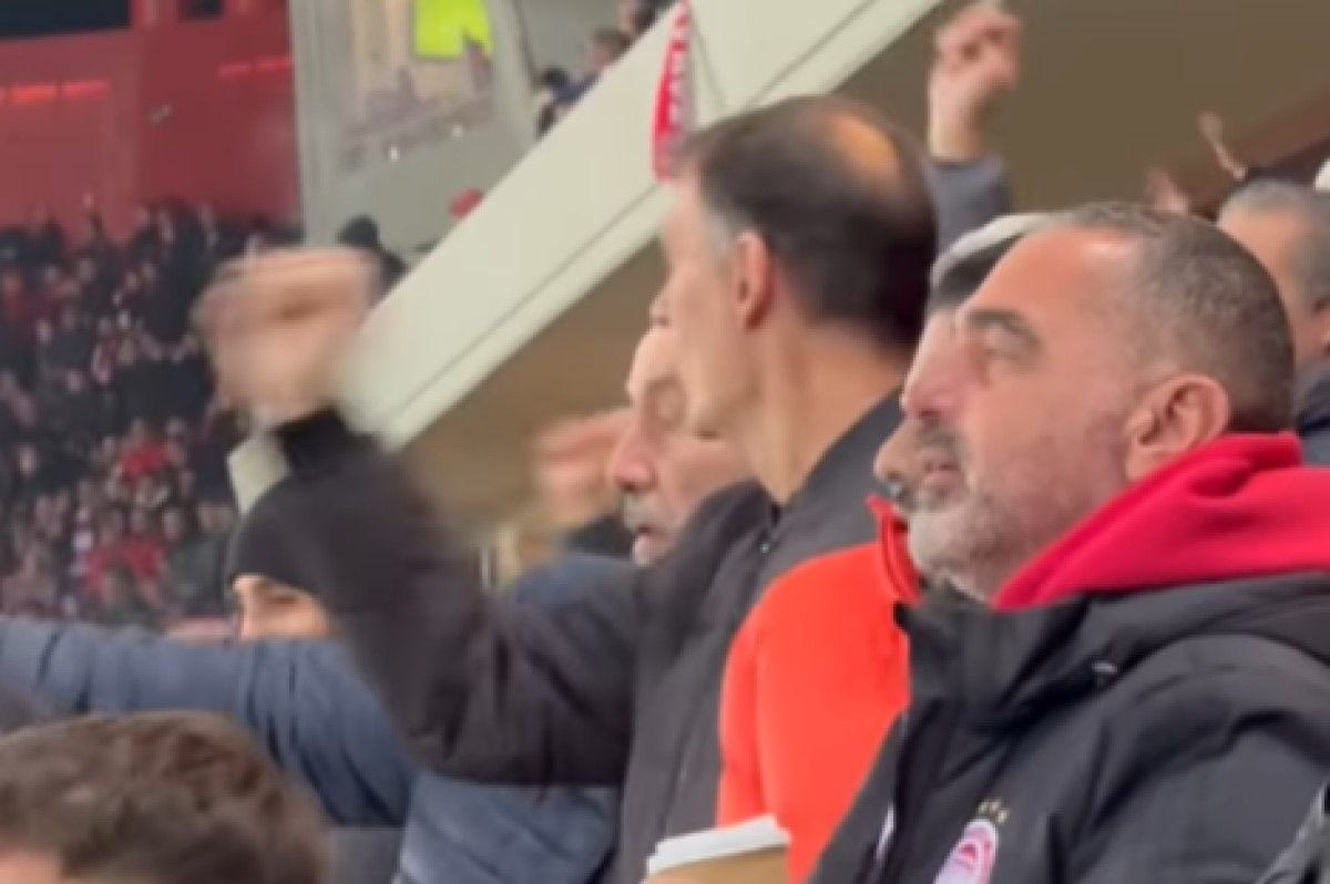 Ο Έλληνας τεχνικός μάλιστα αποθέωσε τον σκόρερ των τριών τερμάτων του Ολυμπιακού, Αγιούμπ Ελ Κααμπί, φωνάζοντας ρυθμικά το όνομά του.