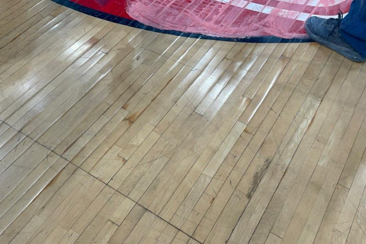 Εικόνα από σημείο του παρκέ στο Στάδιο Ειρήνης και Φιλίας.