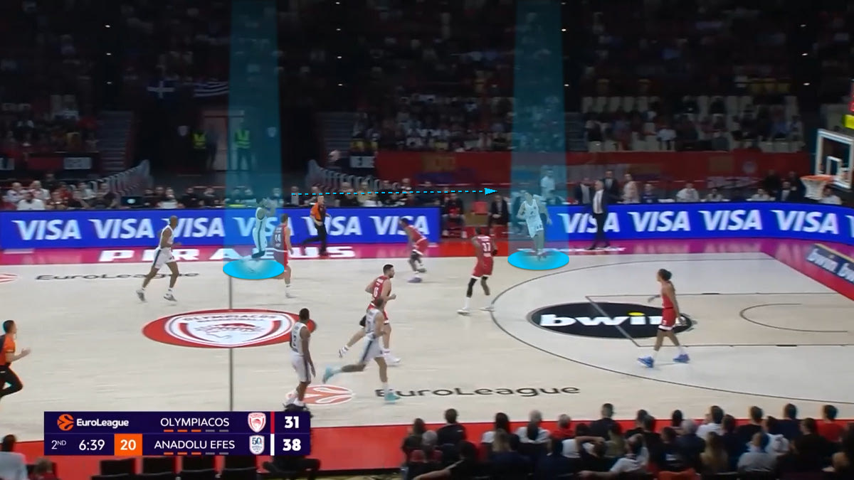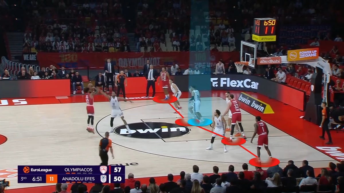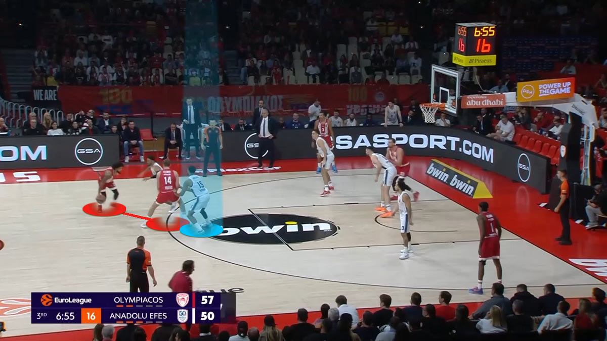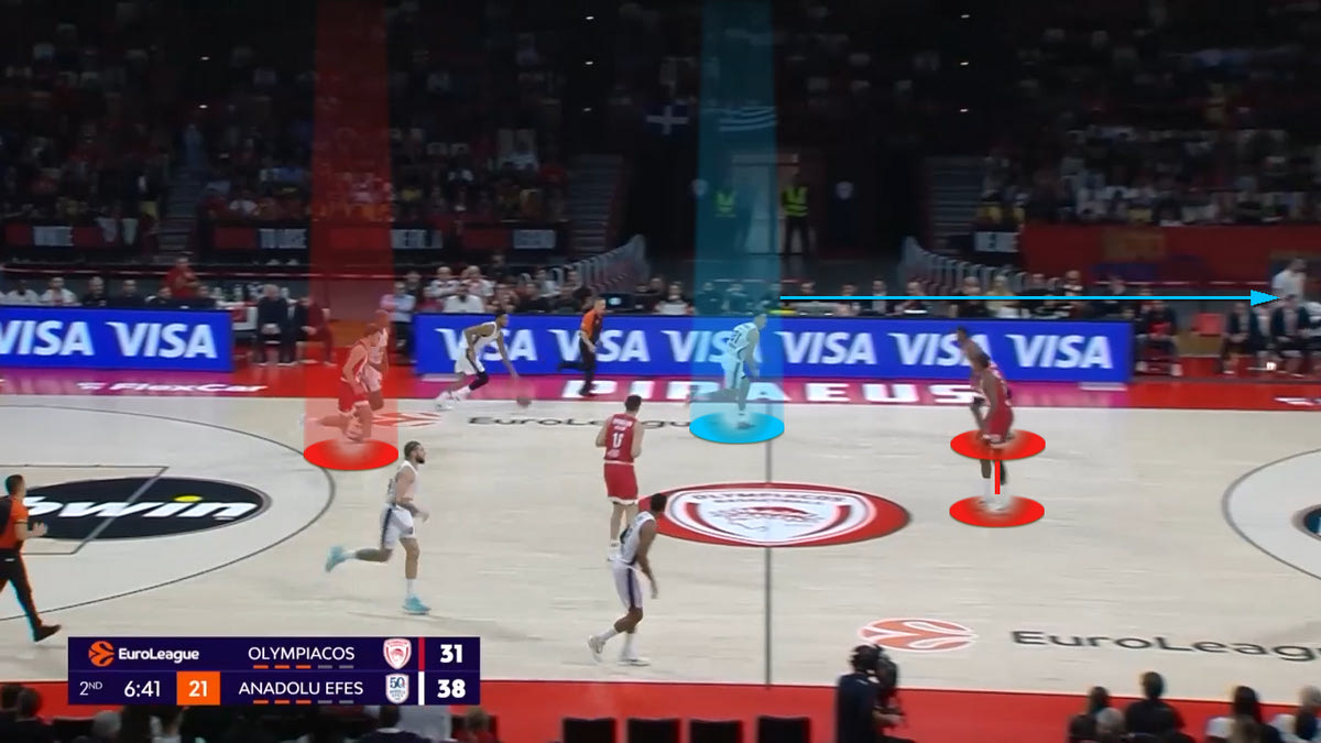 Είναι ξεκάθαρο ότι ο Ολυμπιακός βρίσκεται σε αμυντική ανισορροπία. Ο Αντετοκούνμπο από την πλευρά του έπρεπε να σπεύσει προς τον Σουάιντερ, αφού ο Τζόουνς δεν αποτελεί απειλή, ωστόσο οι σέντερ έχουν συνήθως στο μυαλό τους τους παίκτες που μαρκάρουν. Τέτοιου είδους φάσεις όμως μπορούν να προκύψουν από τρικ όπως αυτά της Εφές. Η απόφαση του τεχνικού της ομάδας, Ιγκόρ Κοκόσκοβ, να βάλει τον Ντόζιερ στον Βεζένκοβ – ενώ ο Βεζένκοβ μάρκαρε τον Σουάιντερ – έπαιξε ρόλο σε αυτή την φάση, όπως και στο να κουραστεί ο σταρ του Ολυμπιακού, που ξεκινούσε στην άμυνα ψάχνοντας τον παίκτη του, πριν στην συνέχεια εμπλακεί σε μία σειρά από σκριν.