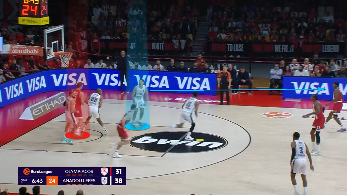 Αυτή η επίθεση ήταν μία από τις πολλές κακές επιθέσεις του Ολυμπιακού. Σύμφωνα με το Hudl Instat, οι “ερυθρόλευκοι” επιχείρησαν συνολικά 14 επιθέσεις σε κατάσταση Pick and Roll και πήραν μόλις 6 πόντους, ενώ την ίδια στιγμή είχαν μόλις 12 κατοχές όπου πήραν σουτ σε κατάσταση Catch and Shoot (σουτ από στάση) και πήραν 17 πόντους. Το νόημα σαφές: Ο Ολυμπιακός βγήκε από το παιχνίδι του. Πήγε περισσότερο στο Pick and Roll και τις ατομικές προσπάθειες από ότι θέλει δεν έβγαλε αρκετά ελεύθερα σουτ. Και αυτό του στοίχισε.