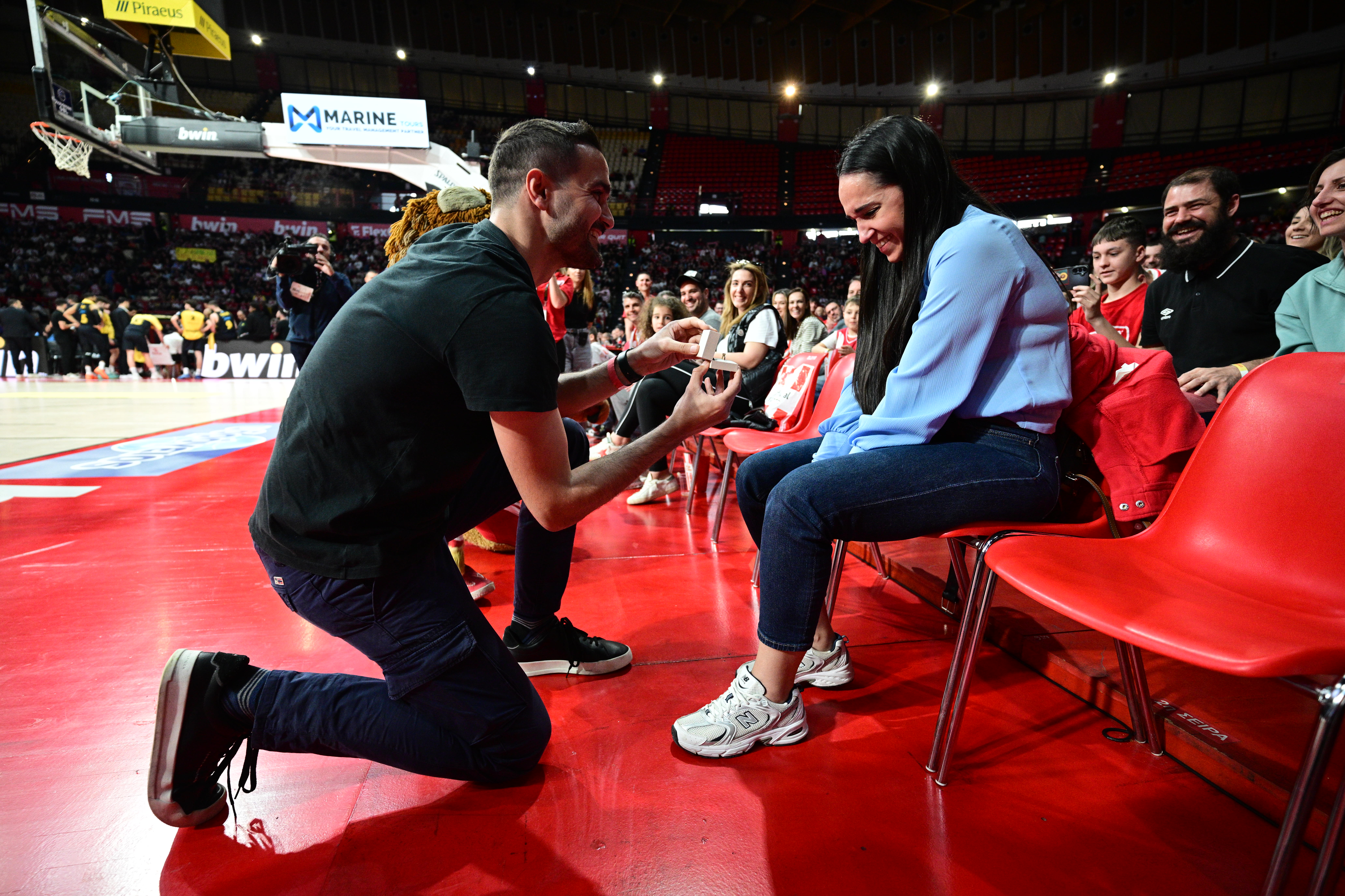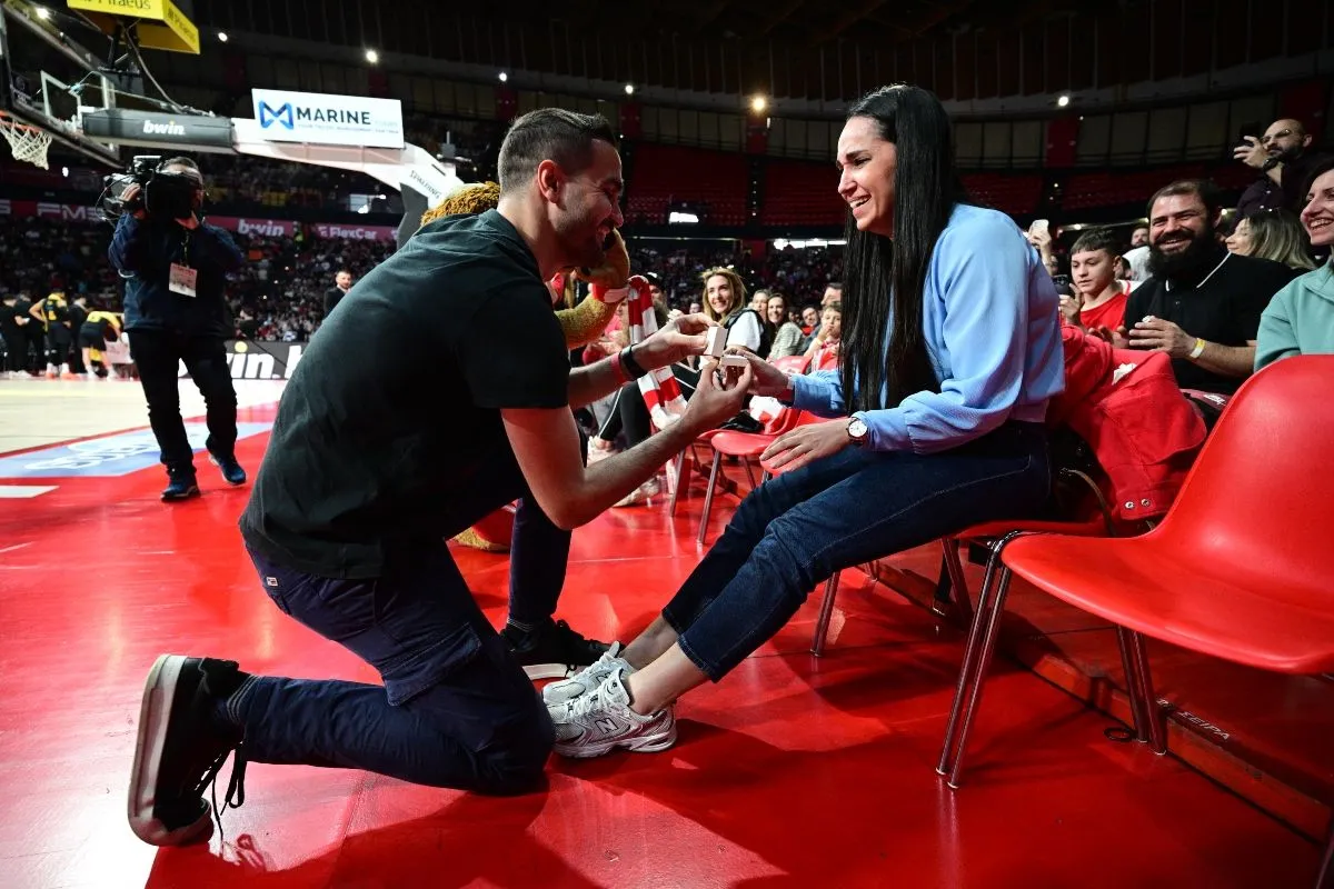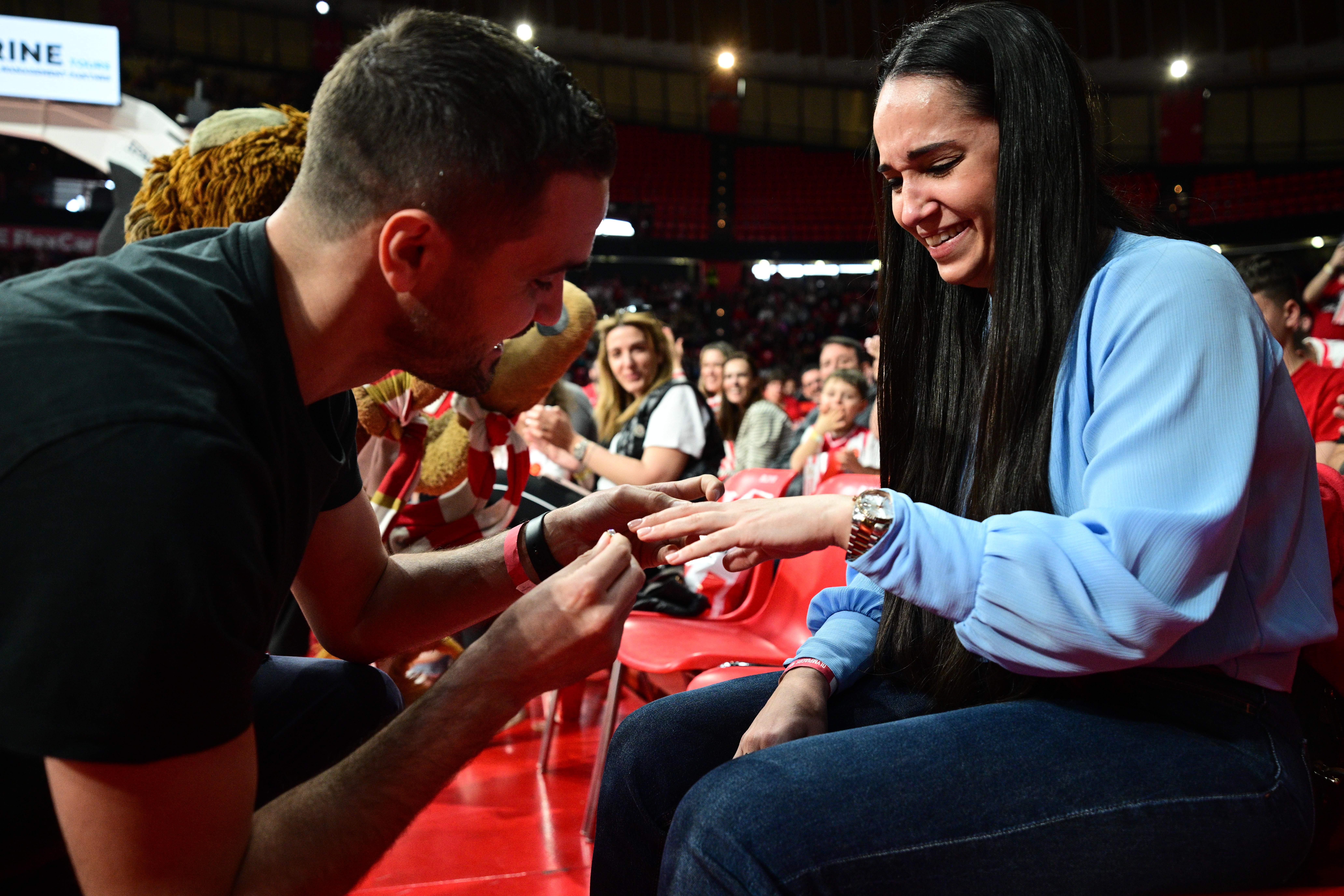 Ολυμπιακός – Άρης Betsson: Ρομαντική στιγμή στο ΣΕΦ, πρόταση γάμου στις εξέδρες πριν την τελευταία περίοδο