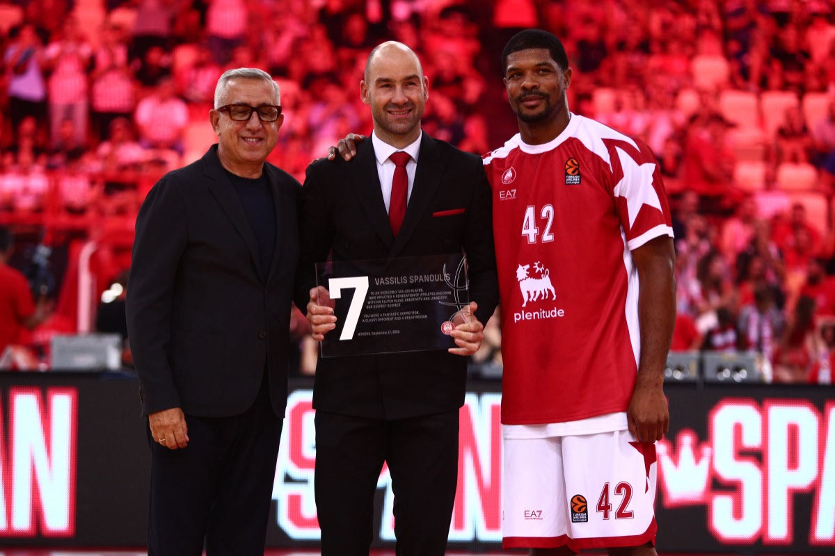 Να σημειώσουμε πως ο Ολυμπιακός αγωνίστηκε για μία και μοναδική φορά με τη συλλεκτική φανέλα προς τιμήν του Σπανούλη. Αυτή η εμφάνιση είχε 11 κόκκινες ρίγες, όσα και τα χρόνια του Σπανούλη στον Ολυμπιακό, χρυσές λεπτομέρειες και το ψευδώνυμο V-Span γραμμένο στις λευκές ρίγες.