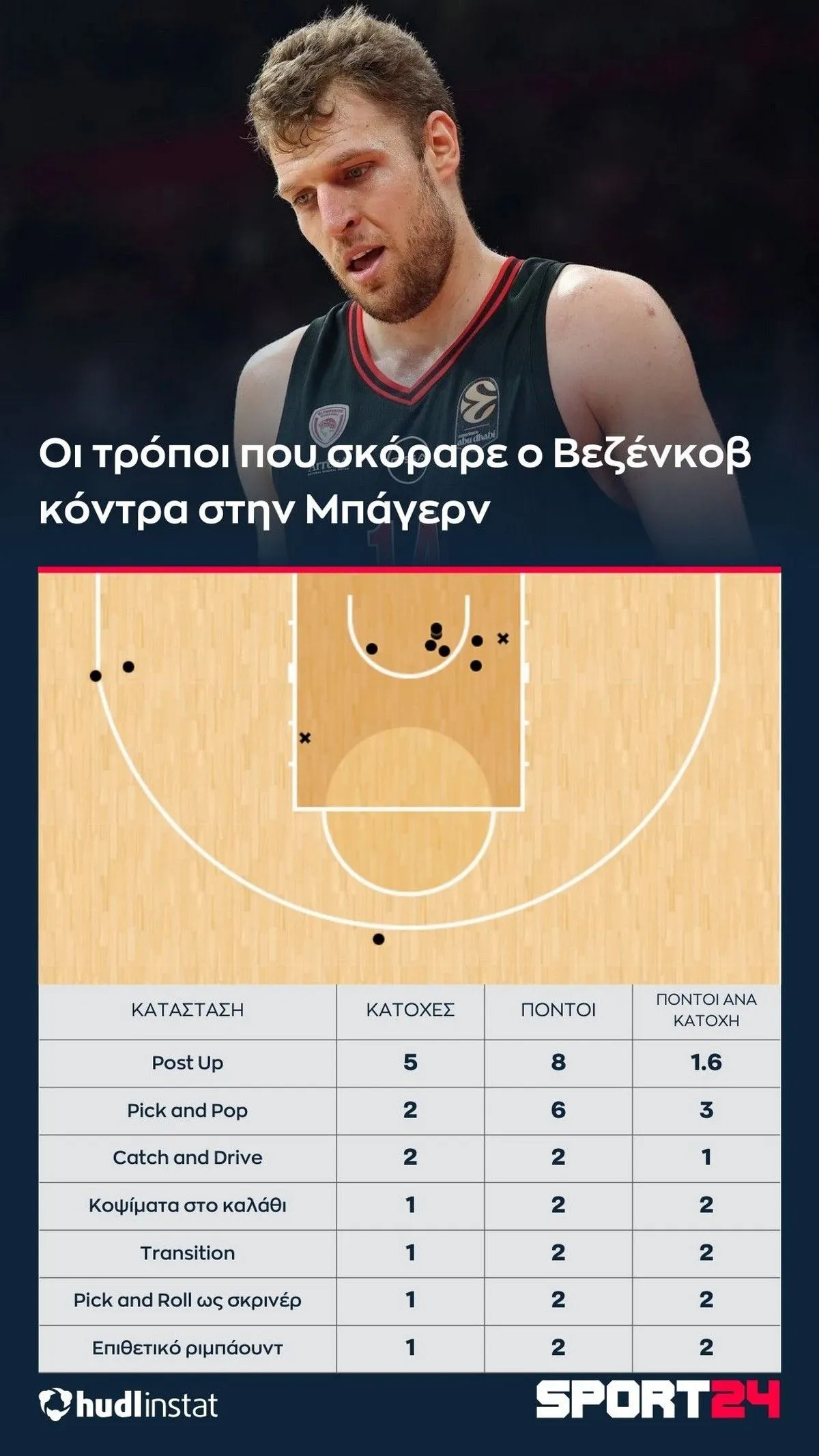 Οι 36 πόντοι που πρόσφερε ο Βεζένκοβ, τιμωρώντας την άμυνα της Μπάγερν