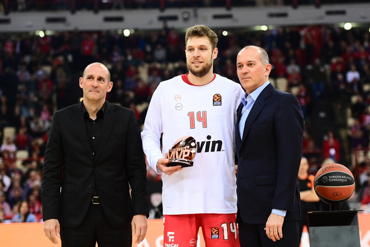 Ο Ολυμπιακός παρουσίασε την άλλη πλευρά της νίκης του επί τη Μπαρτσελόνα, με την ανατριχίλα και τον πόνο στην ενός λεπτού σιγή για τα θύματα στην τραγωδία στα Τέμπη, την βράβευση του Βεζένκοβ που αναδείχθηκε MVP του Φεβρουαρίου και τις εκδηλώσεις του κόσμου να ξεχωρίζουν.