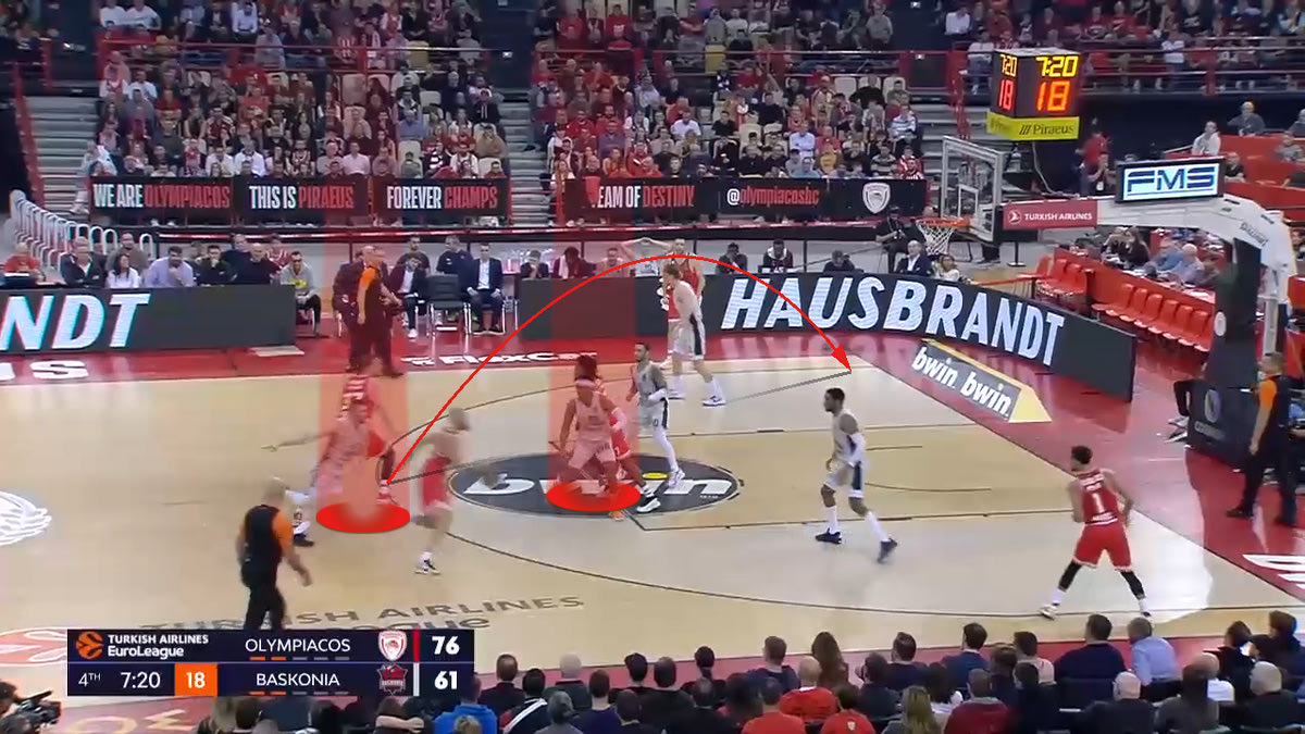 Κλείνοντας με τον Μιλουτίνοβ, το ότι αισθάνεται καλύτερα φάνηκε και στο πώς συμπεριφερόταν στο Pick and Roll. Ο Σέρβος ψηλός μετά το σκριν ρόλαρε πιο γρήγορα, πιο δυναμικά στο καλάθι από ότι σε προηγούμενα ματς, κάτι που έκανε και πιο απλό για τους συμπαίκτες του – και ειδικά τον Φουρνιέ – να τον βρουν. Ιδού ένα παράδειγμα:
