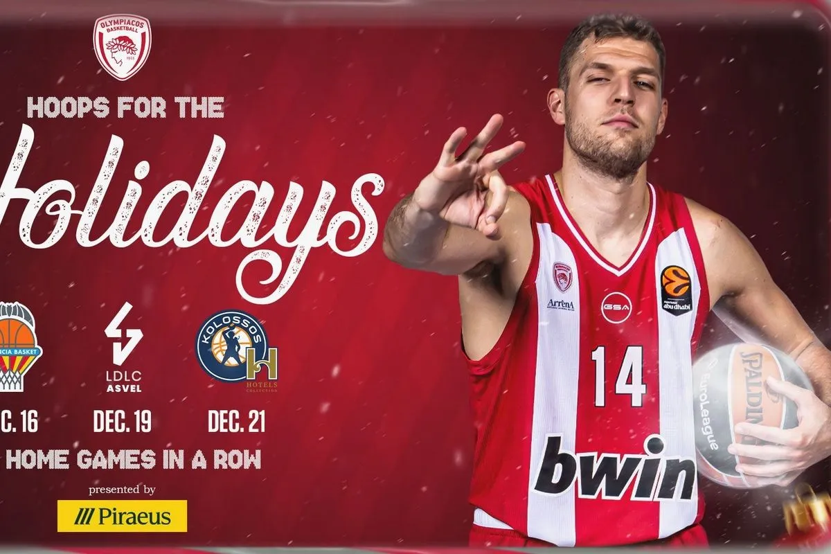 “Ο Ολυμπιακός δίνει τρία σερί εντός έδρας παιχνίδια (16/12 με Βαλένθια, 19/12 με Βιλερμπάν, 21/12 με Κολοσσό Ρόδου) και σας περιμένουμε από νωρίς στις θέσεις σας με δράσεις, εκπλήξεις και μοναδικά δώρα για όλους!