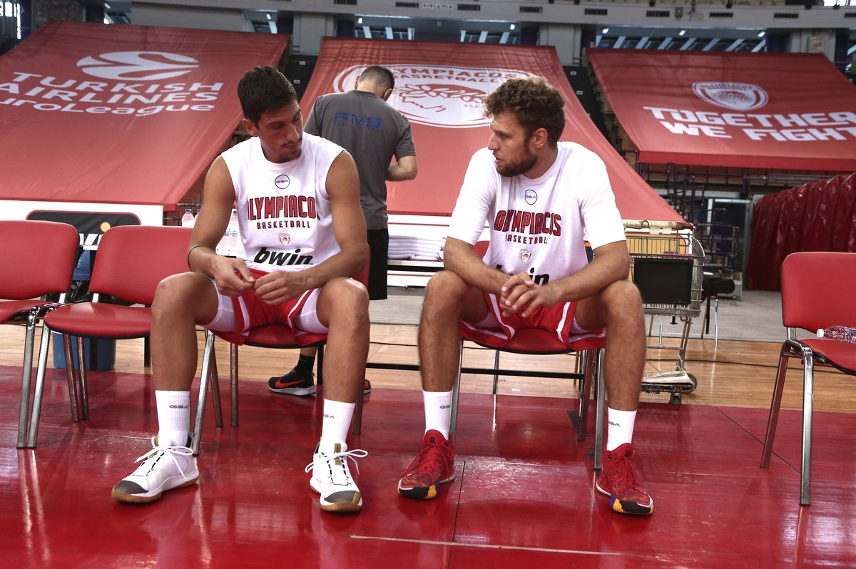 Οι παίκτες του Ολυμπιακού κατά τη διάρκεια της προπόνησης INTIME SPORTS