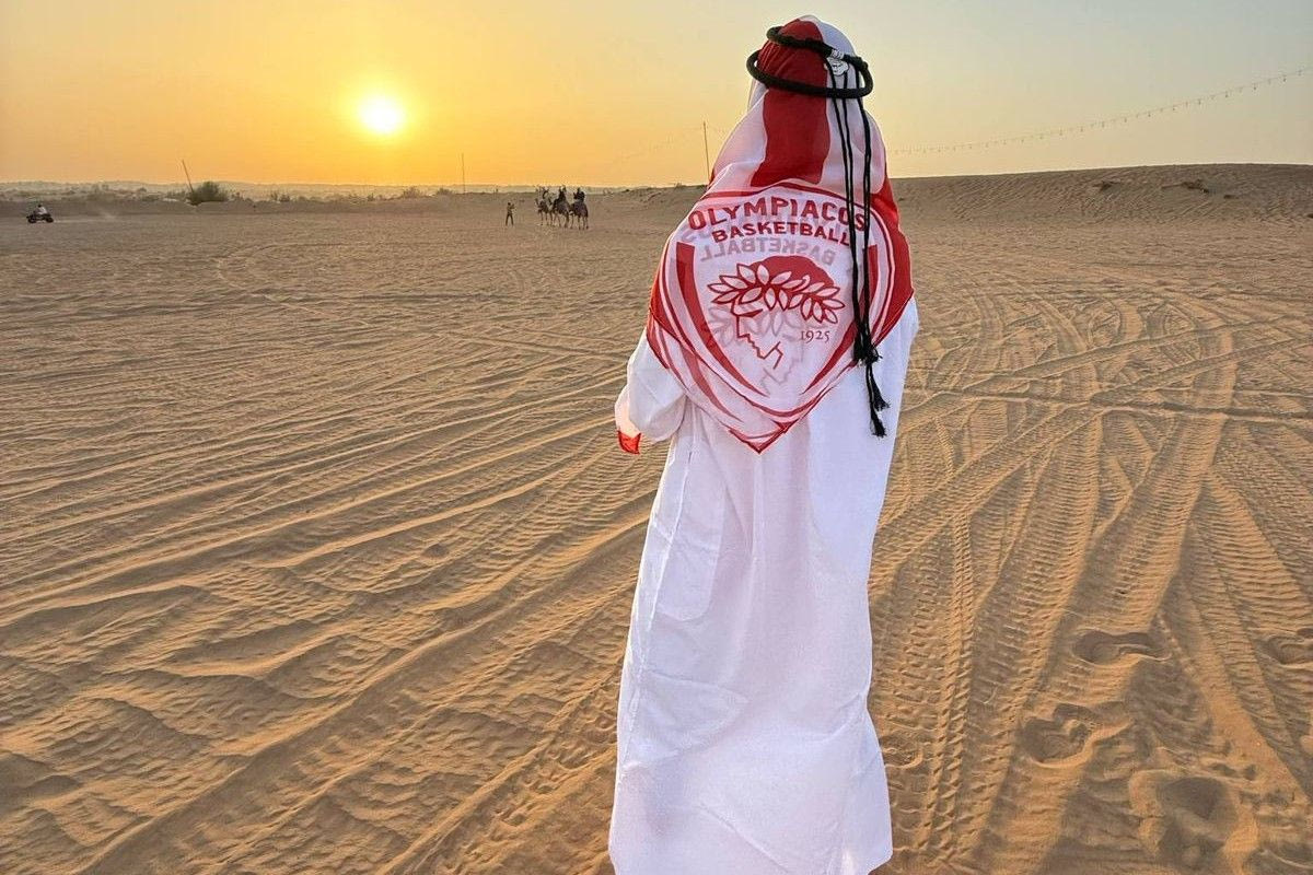 Μπόλικο ελληνικό χρώμο έχει το Άμπου Ντάμπι αυτές τις ημέρες, λόγω της παρουσίας φιλάθλων του Ολυμπιακού και του Παναθηναϊκού για το Final Four της EuroLeague. Οι φίλοι των ερυθρολεύκων έχουν στήσει τη δική τους γιορτή όπου βρίσκονται. Είτε σε μπαρ, είτε στις ερήμους είτε σε ουρανοξύστες.