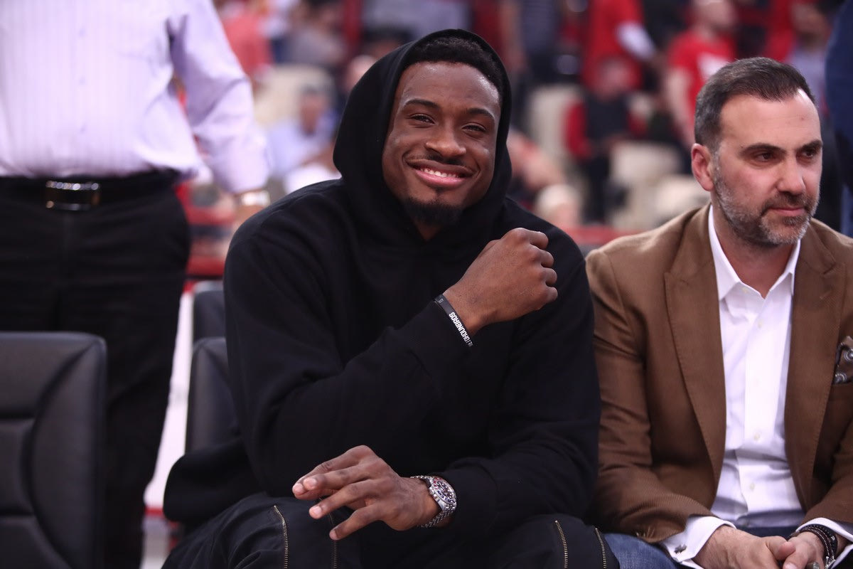 Από τις court side θέσεις του ΣΕΦ παρακολούθησε το Game 5 του Ολυμπιακού με τη Φενέρμπαχτσε ο Θανάσης Αντετοκούνμπο.