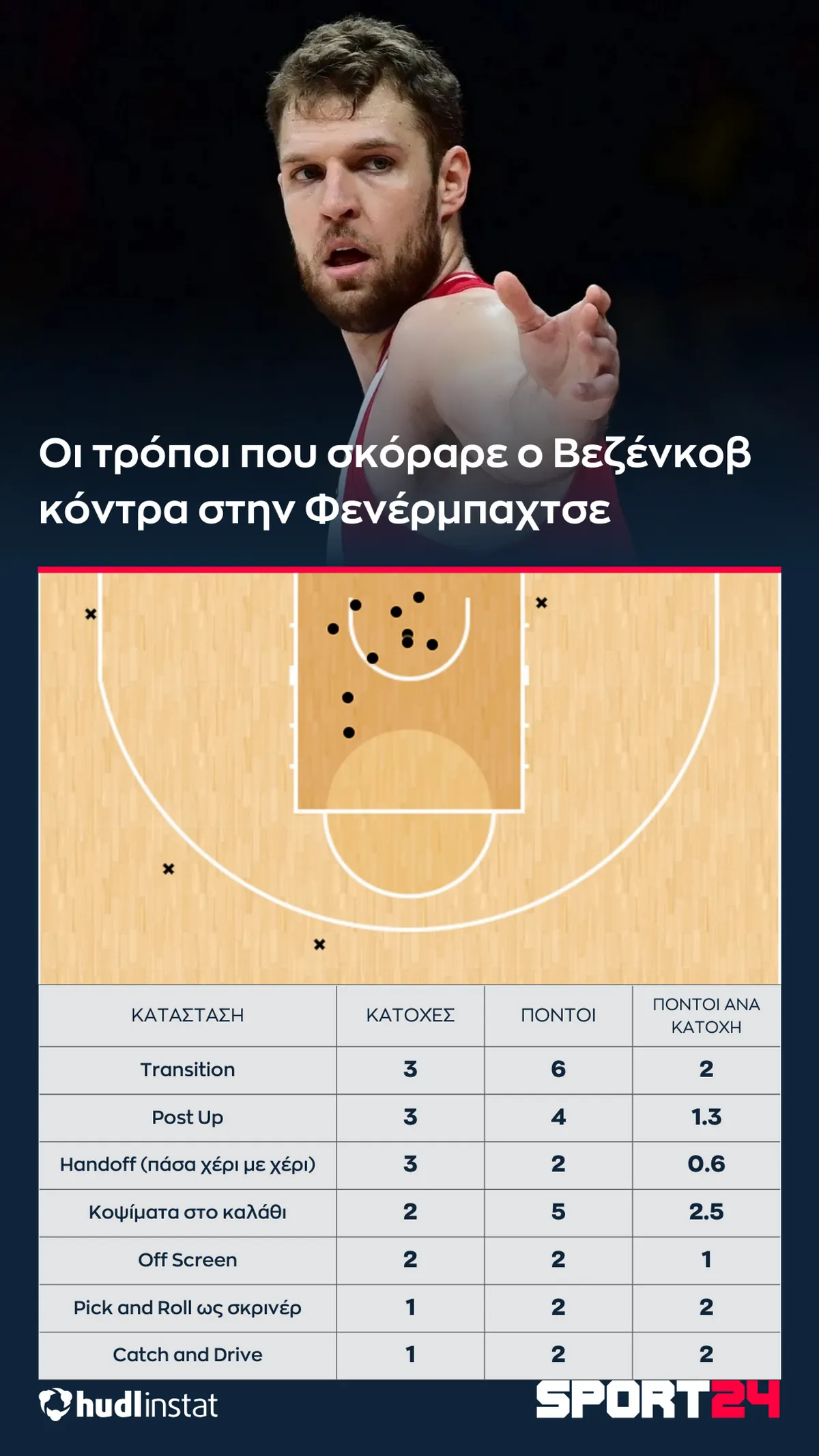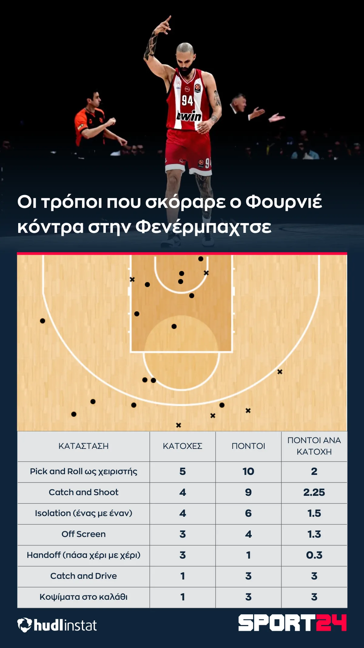 Ο Στέφανος Μακρής αναλύει με την βοήθεια του Hudl Instat την νίκη του Ολυμπιακού επί της Φενέρμπαχτσε. Ο μαγικός Φουρνιέ, οι 24 πόντοι από ασίστ του Γουόκαπ και η σύνδεση του νατουραλιζέ γκαρντ με τον Βεζένκοβ.