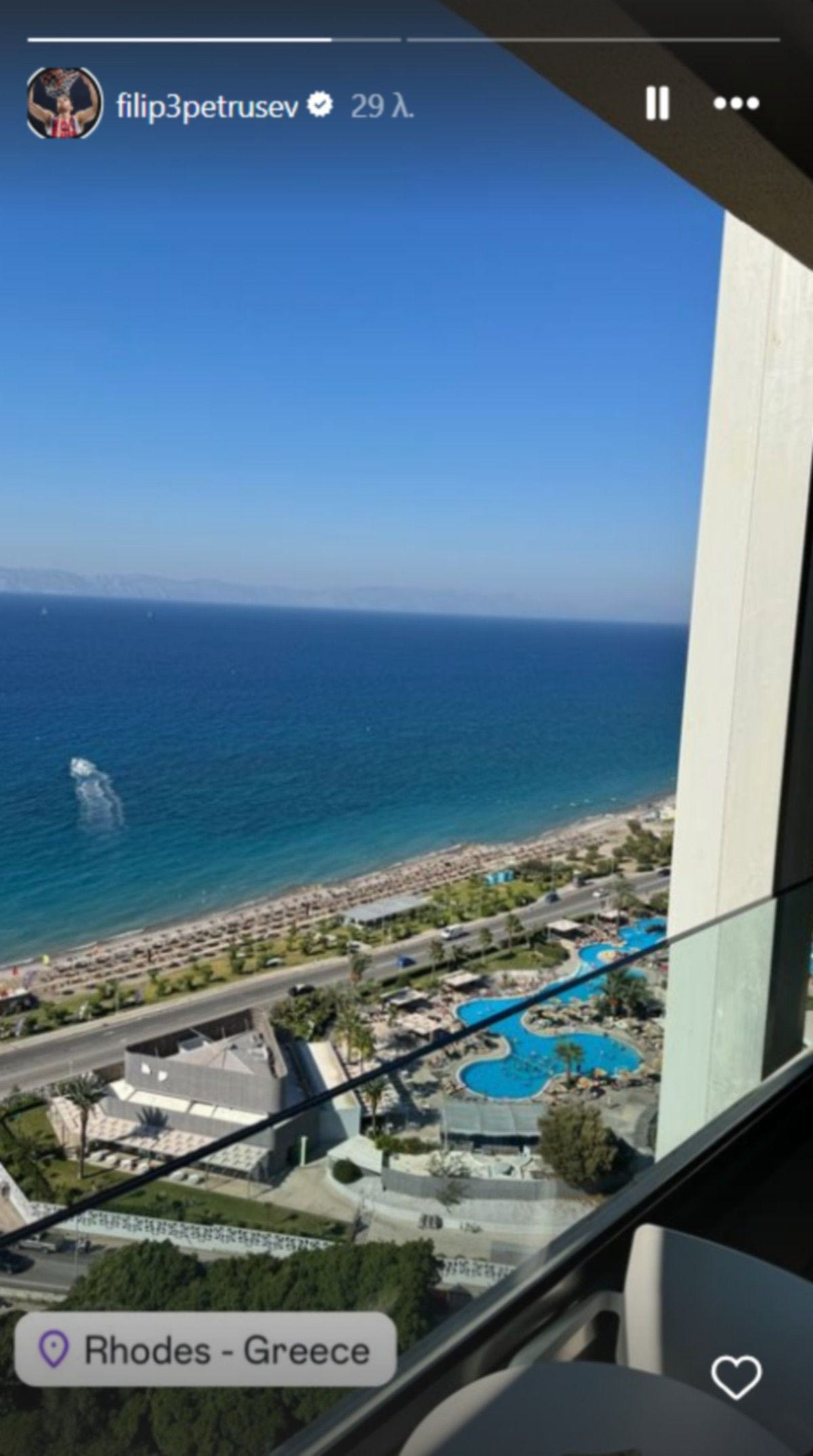 Οι παίκτες είναι έτοιμοι για το Stoiximan Super Cup. Ο Φίλιπ Πετρούσεβ δεν μπόρεσε να μην κάνει και μία πρώτη ανάρτηση από νησί με τον ίδιο να δημοσιεύει τη θέα από το δωμάτιό του με τοποθεσία, Ρόδος, πάνω στο στόρι του.