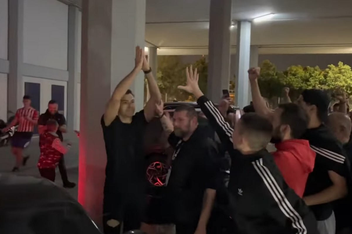 Το σύνθημα “Σλούκα, αλάνι, για πάντα στο λιμάνι” σκέπασε τα πάντα όταν βγήκε στο προάυλιο του ΣΕΦ ο ηγέτης του Ολυμπιακού, σε μία όμορφη στιγμή.