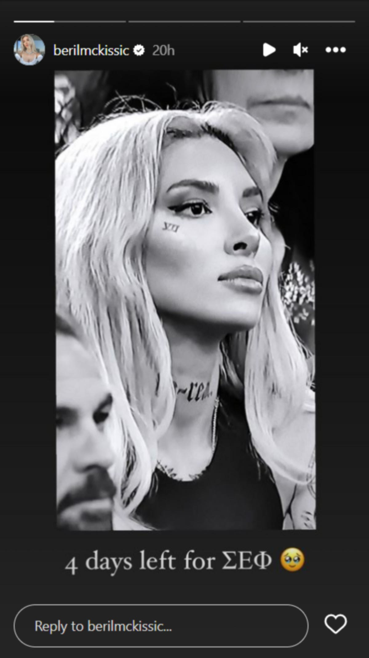 Με αφορμή το γεγονός πώς η ομάδα του Γιώργου Μπαρτζώκα θα υποδεχθεί στο ανανεωμένο Στάδιο Ειρήνης και Φιλίας την Μπαρτσελόνα (13/10, 21:15), στο πλαίσιο της 2ης αγωνιστικής της EuroLeague, η Μπέριλ ανήρτησε μία φωτογραφία της σε στόρι στο Instagram, και να δείξει το πόσο χαρούμενη είναι.