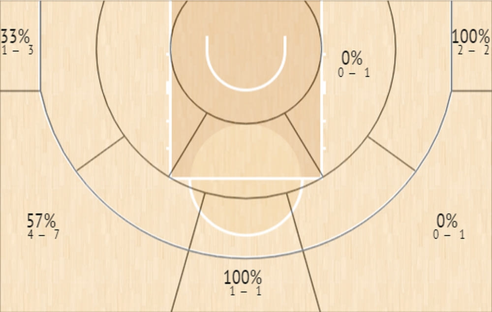 - Σε ποσοστό 21.1% επιτέθηκε από κατάστάσεις catch and shoots. Μέσα από αυτές βρήκε 1.6π. ανά κατοχή την ώρα που έπαιρνε κατά μέσο όρο 1.21π. Σε αυτές τις συνθήκες ο Κάναν, που πήρε το 1/3 των συνολικών, ήταν μακράν του άλλο ο πιο αποτελεσματικός ατομικά με 2.4π. ανά κατοχή, την ώρα που ο δεύτερος Γουόκαπ προσέφερε 1.5π.