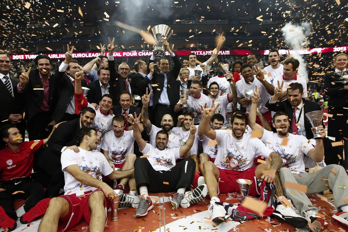 Ο Ολυμπιακός πανηγυρίζει την κατάκτηση της EuroLeague το 2013