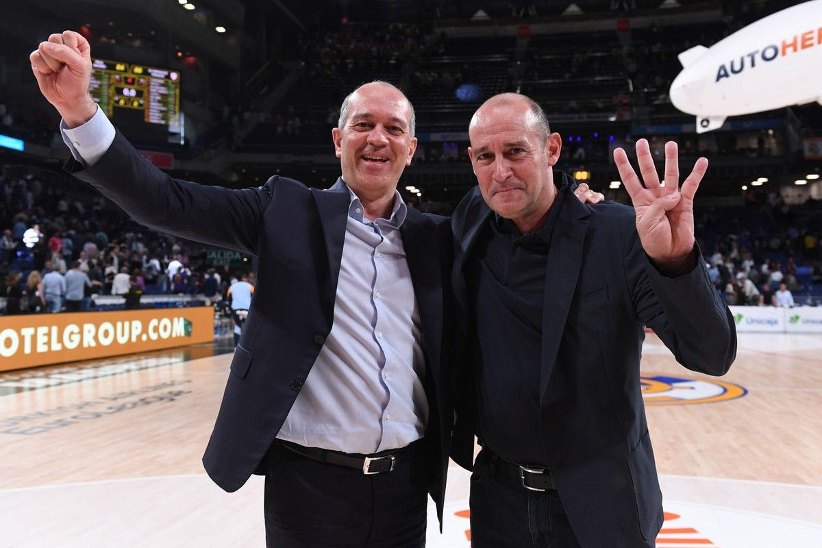 Ανάμεσα στις πανηγυρικές φωτογραφίες υπάρχει και μία των αδερφών Αγγελόπουλων, με τον Γιώργο να σφίγγει τη γροθιά του και τον Παναγιώτη να δείχνει με τα δάχτυλά του τον αριθμό τέσσερα, όσα είναι και τα σερί Final Four που έχουν πάει οι “ερυθρόλευκοι”.