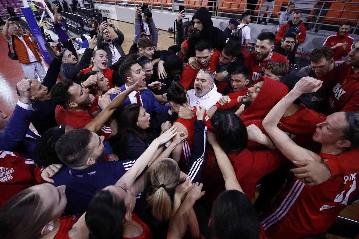 Ολυμπιακός: Η ομάδα των ανδρών των ερυθρόλευκων πανηγύρισε μαζί με εκείνη των γυναικών για την πρόκριση στον τελικό του Κυπέλλου