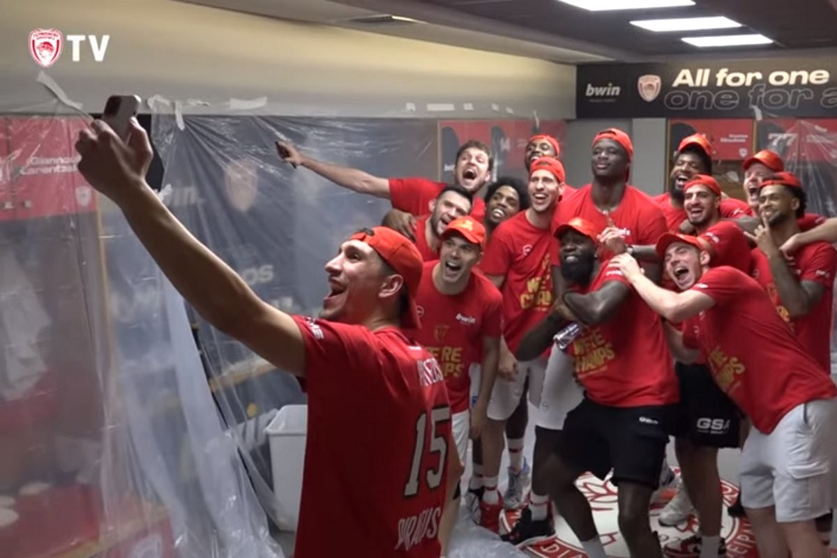 Ολυμπιακός: Η πανηγυρική selfie πριν την απονομή του πρωταθλήματος και η αποθέωση του Πρίντεζη